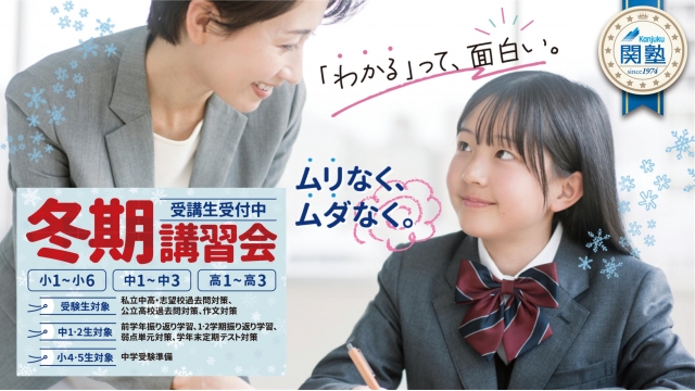 みなさんこんにちは!関塾の冬期講習会が今年も始まりました!すでに情熱に燃えている方はもちろんのこと、…